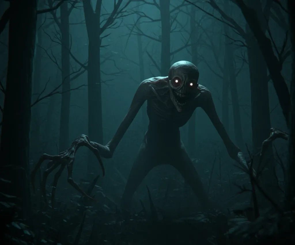 This creature is the physical manifestation of a human being who has been spiritually and physically hollowed out by one of two things: the ultimate taboo of consuming human flesh, or an insatiable, corrosive greed. It’s a gaunt, skeletal parody of a man, cursed to grow even larger with each victim it devours, ensuring its hunger can never, ever be satisfied. That’s the real horror - not a beast hiding in the trees, but the ghost of a human consumed from the inside out.